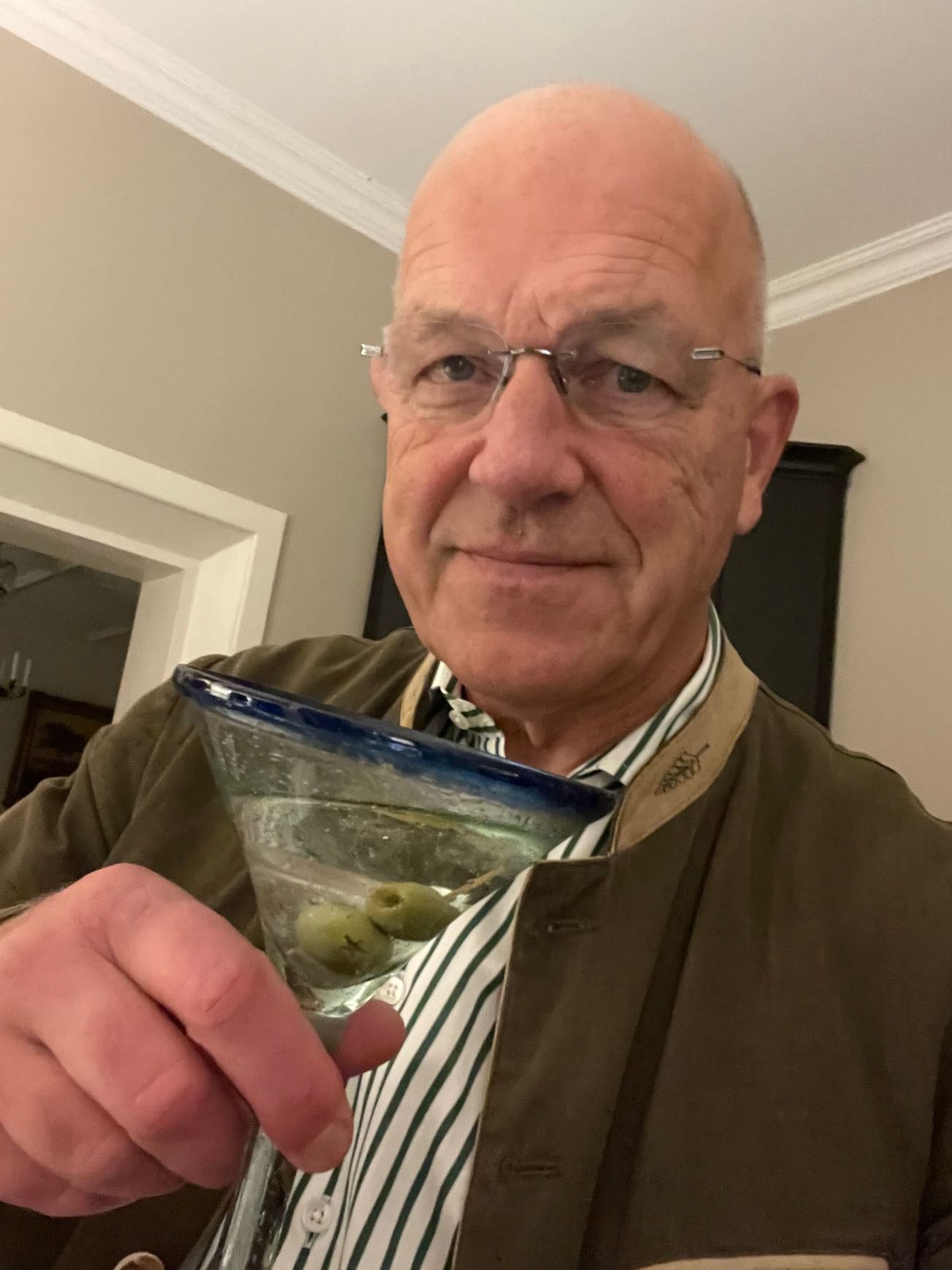 Ikväll har jag blandat en Dry Martini med proportionerna 4,5 delar gin, en del vermouth. Inte jättetorr alltså men riktigt god. Den blev ”grumlig” med oliver, inte citronskal denna gång. Bombay Sapphire och Martini (vit). Blev riktigt bra! Så skall det va’!